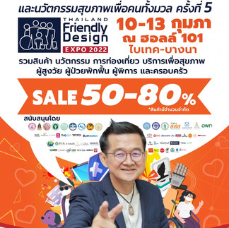 การจัดงาน Thailand Friendly Design Expo 2022 : มหกรรมอารยสถาปัตย์ และนวัตกรรมสุขภาพเพื่อคนทั้งมวล ครั้งที่ 5" จะมีขึ้นในวันที่ 10 - 13 กุมภาพันธ์ 2565 ณ ฮอลล์ 101 ศูนย์นิทรรศการและการประชุมไบเทค บางนา เป็นการจัดแสดงและจำหน่ายสินค้า เทคโนโลยี นวัตกรรม และบริการเพื่อสุขภาพ สำหรับผู้สูงอายุ ผู้ป่วยพักฟื้น ผู้พิการ คนรักสุขภาพ และการท่องเที่ยวเพื่อคนทั้งมวล (Tourism for All)